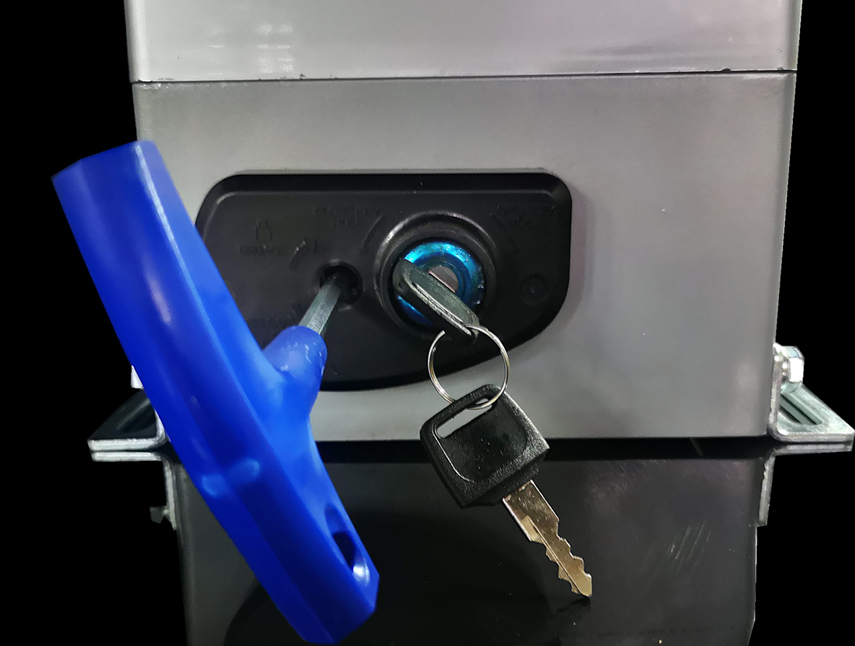 2、停電應(yīng)急->電機(jī)側(cè)旁留有鑰匙可打開(kāi)離合開(kāi)關(guān),手動(dòng)開(kāi)啟門(mén)。